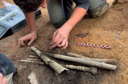 Opgraving van de bronzen tuba op het antieke forum van Bavay in 2021. (© Service archéologie et patrimoine du Département du Nord)Niederösterreich)